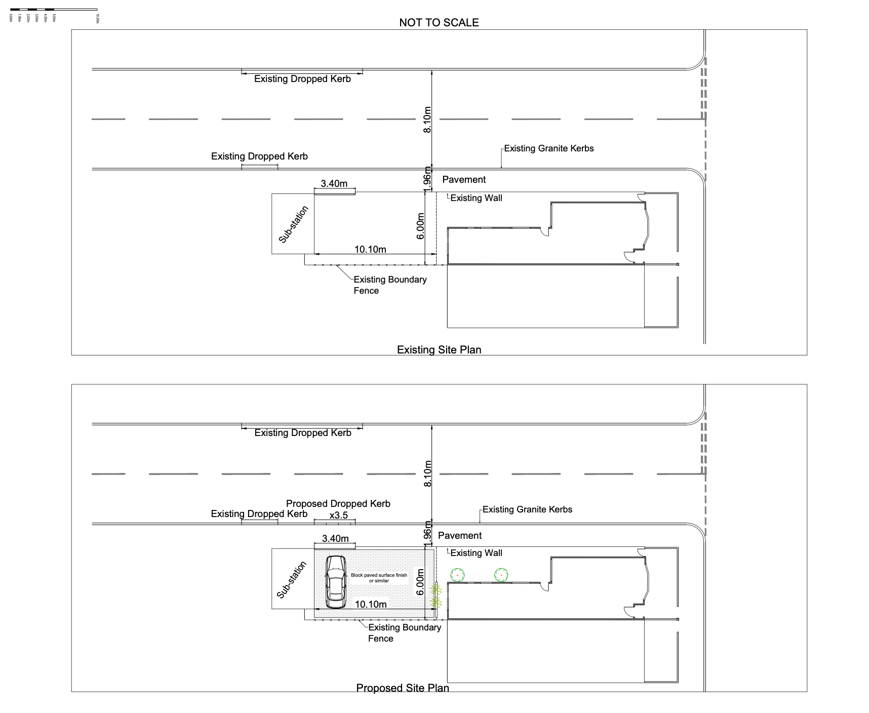 Client required technical drawings to support a planning application for a dropped kerb. Application was approved.